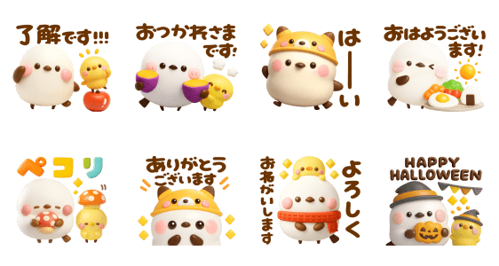 大人気「ぴよたぬき♡」のシマエナガとぴよこが3Dで登場!ハロウィン&秋仕様になった定番のあいさつなど日常で大活躍できるやさしくてかわいいスタンプが勢ぞろい!家族や友だちにも送りやすい♪LINEスキマニ公式アカウントと友だちになるともらえるよ!配布期間:2025/11/12まで