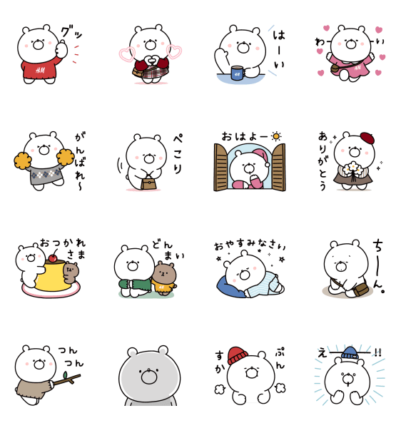 動く限定スタンプ, 期間限定スタンプ H&M, naonao3, アニメーションスタンプ, ガーリーくまさん, かわいい, クマ, コラボ, ファッション, ぼのぼの, 友だち追加, 女子力, 限定無料スタンプ
