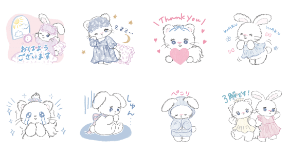 期間限定スタンプ NAPPY, tu-hacci, イラストレーター, ウサギ, オシャレ, かわいい, コラボ, ネコ, ファッション, ぼのぼの, ランジェリー, 先着順, 友だち追加, 数量限定, 限定無料スタンプ