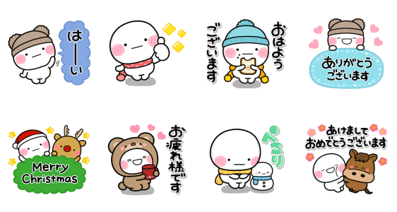 限定無料スタンプ::冬&年末年始のやさしい敬語♡しろまる