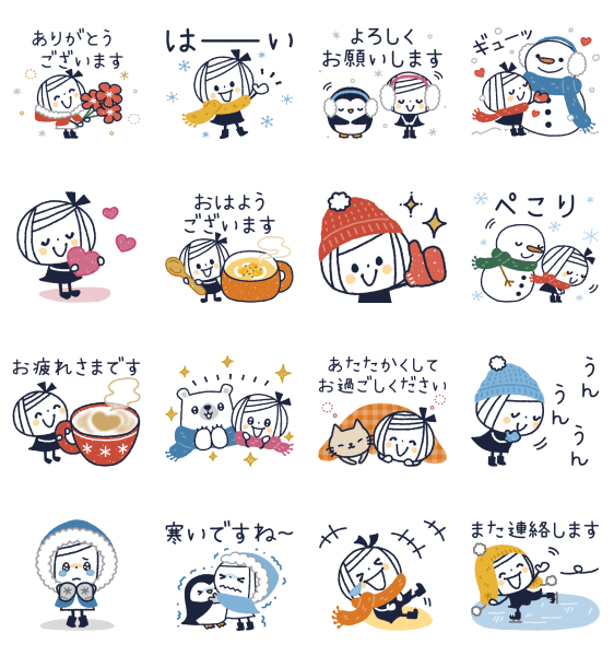心くばり&敬語♡冬のボブGIRL スタンプをダウンロード