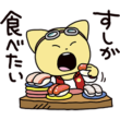 <LINEスタンプ説明>: 食べすぎたしばけん。 犬/いただきます/グルメ/シバイヌ/日本