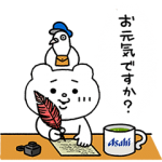 <LINEスタンプ説明>: 「コウペンちゃん」と 「アサヒビール」のコラボスタンプが登場!コウペンちゃんの優しいスタンプを使って、家族や友だちをほっこり温かい気持ちにしよう!アサヒビール公式